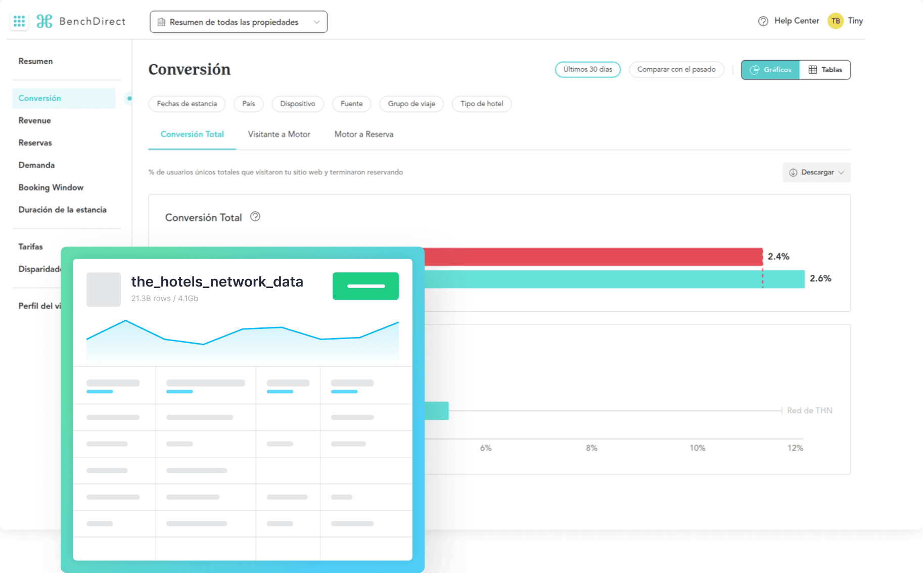 THN is an innovative data and technology platform operating within the hospitality industry. Using data they collect from hotel websites around the world, THN provides hoteliers with an ecosystem of tools to help them increase their direct bookings. The tools include Oraculo, a Predictive Personalization AI model to help hotels optimize conversions on their website ("turn lookers into bookers") and BenchDirect, an interactive benchmarking platform so hotels can compare their direct channel performance to their competitors in real time.