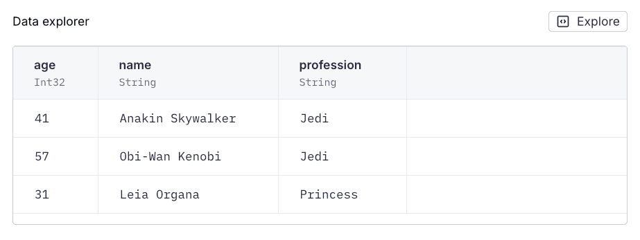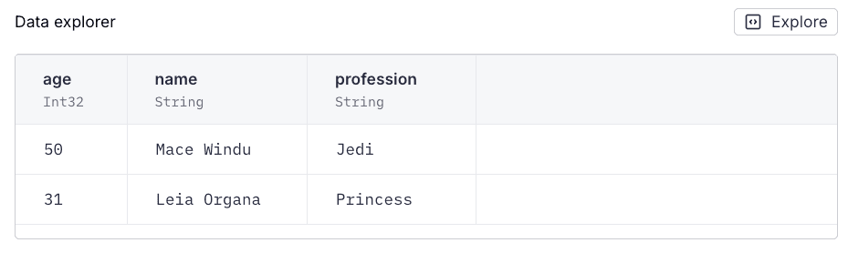 Why were the existed rows not removed? Because the replace process uses the payload rows to identify which partitions to work on. The Data Source is now partitioned by name and not profession, so the process didn't delete the other "Jedi" rows. They're in different partitions because they have different names.