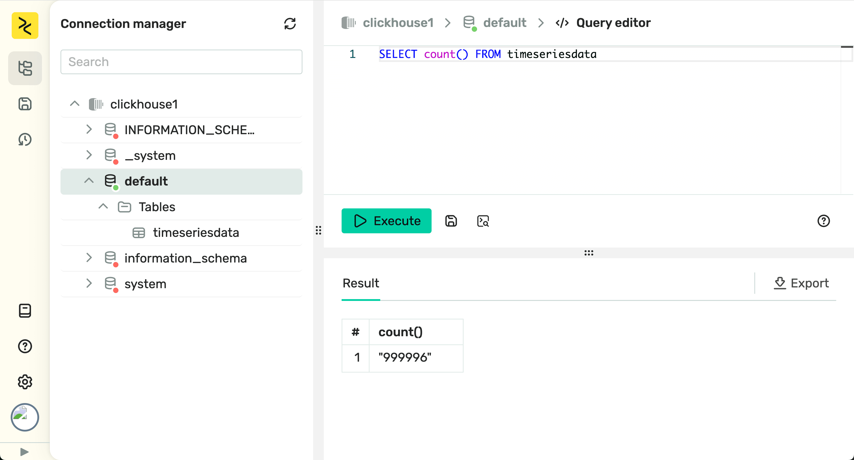 Export your table to Amazon S3 In this guide, we're using a table on our DoubleCloud ClickHouse Cluster called timeseriesdata