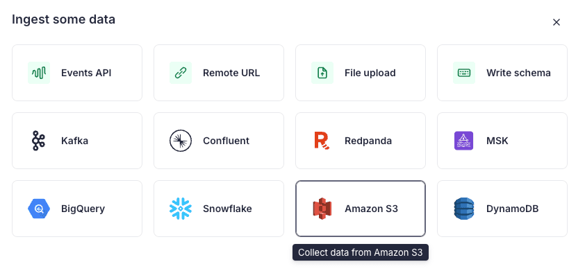 Once your table is exported to Amazon S3, import it to Tinybird using the Amazon S3 Connector.