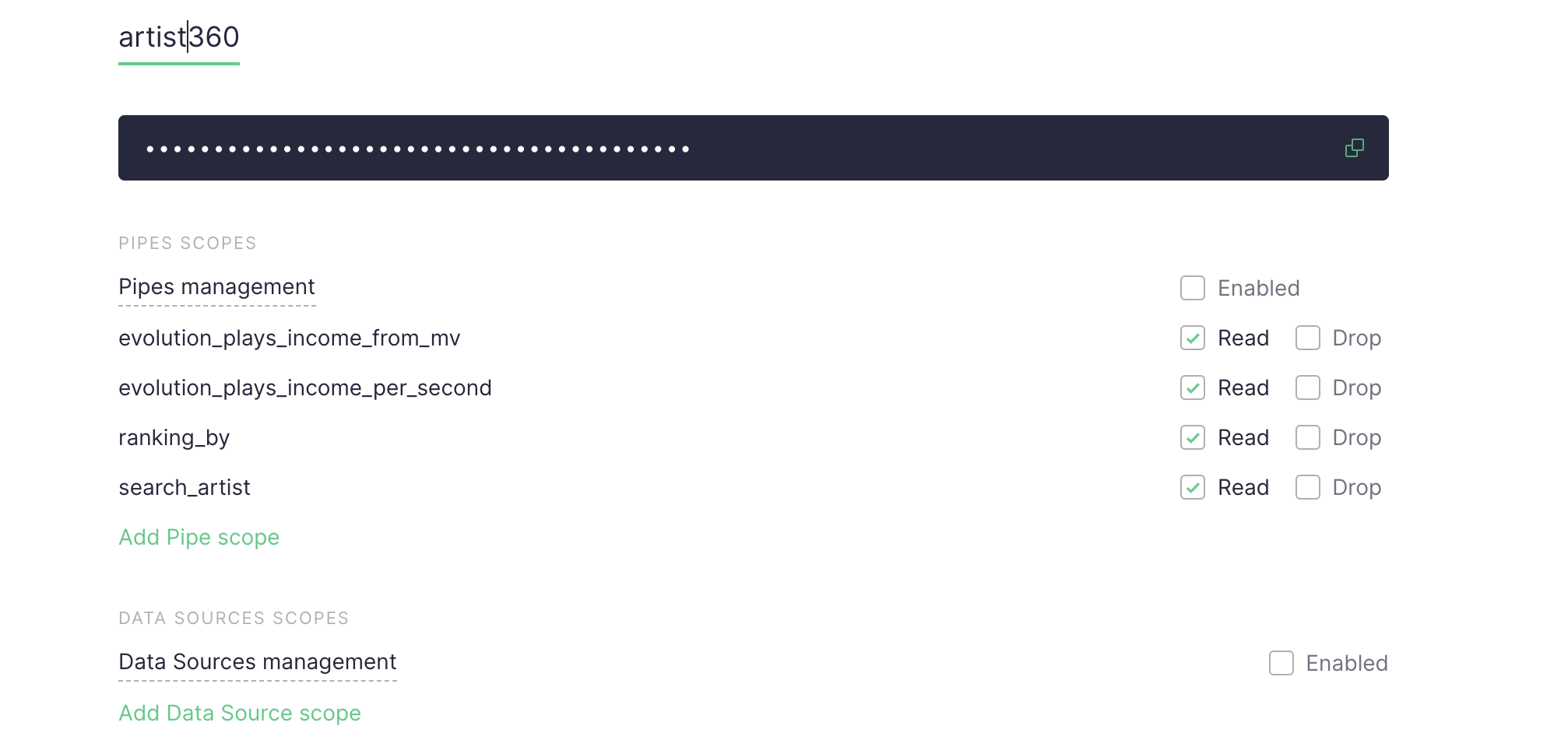 - The token management page now shows pipes and Data Sources’ names, instead of IDs.