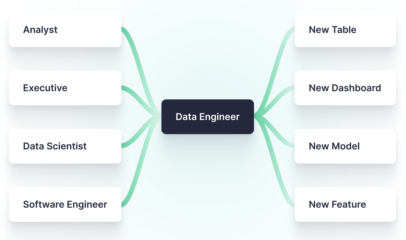 That last group (software engineers) are often thought of primarily as data producers. But what happens when Product wants to start building features based on data in Snowflake? All of a sudden, Data Engineers have another mouth to feed.