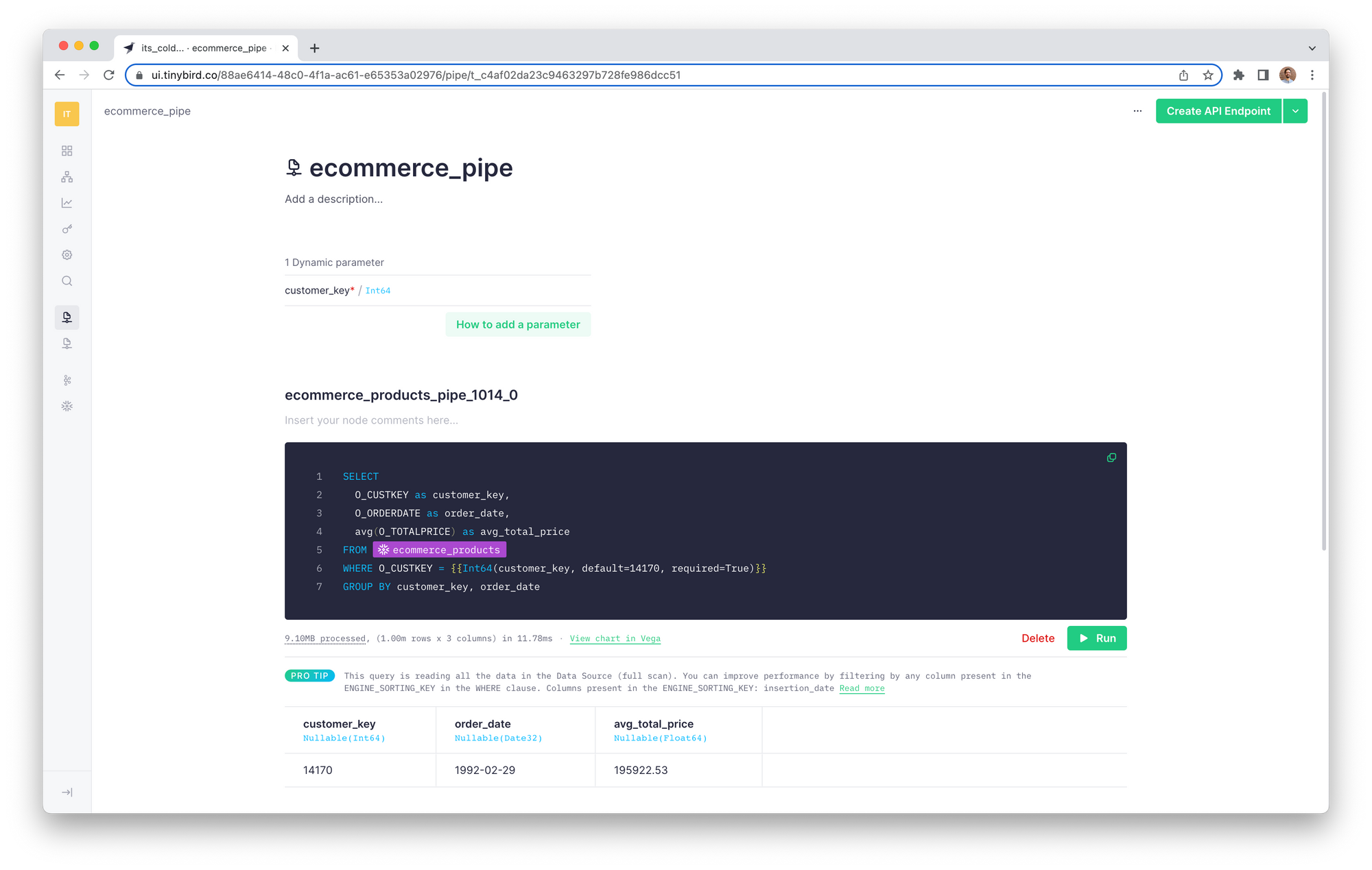 Alternatively, Data Engineers can retain complete control over the data pipelines, and use Tinybird as a force multiplier to make it quite easy to publish data products as APIs that their software engineering consumers can use.