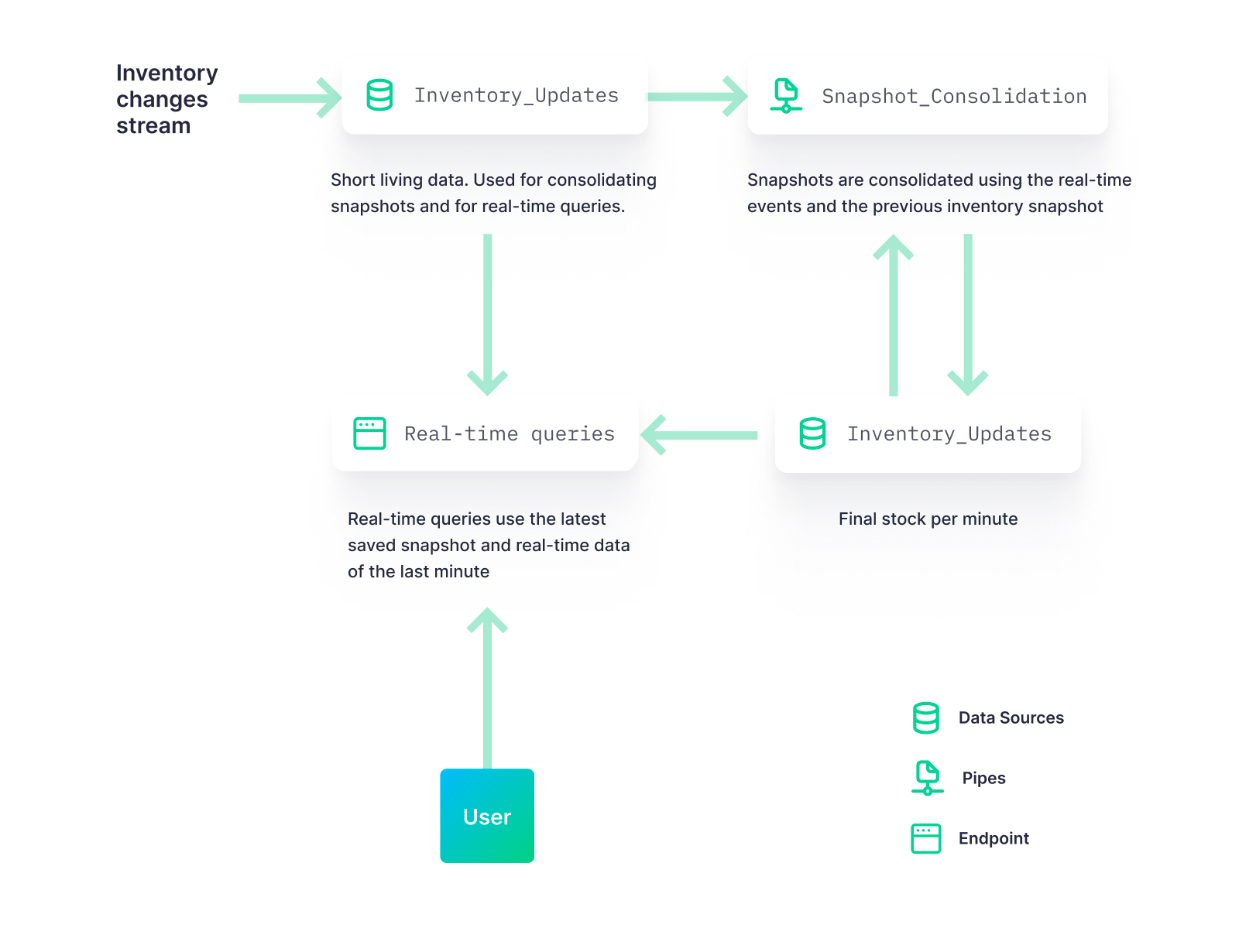 - Creating lambda architectures, using Copy Pipes to write the historical data, and combining the results later with the latest real-time data.
