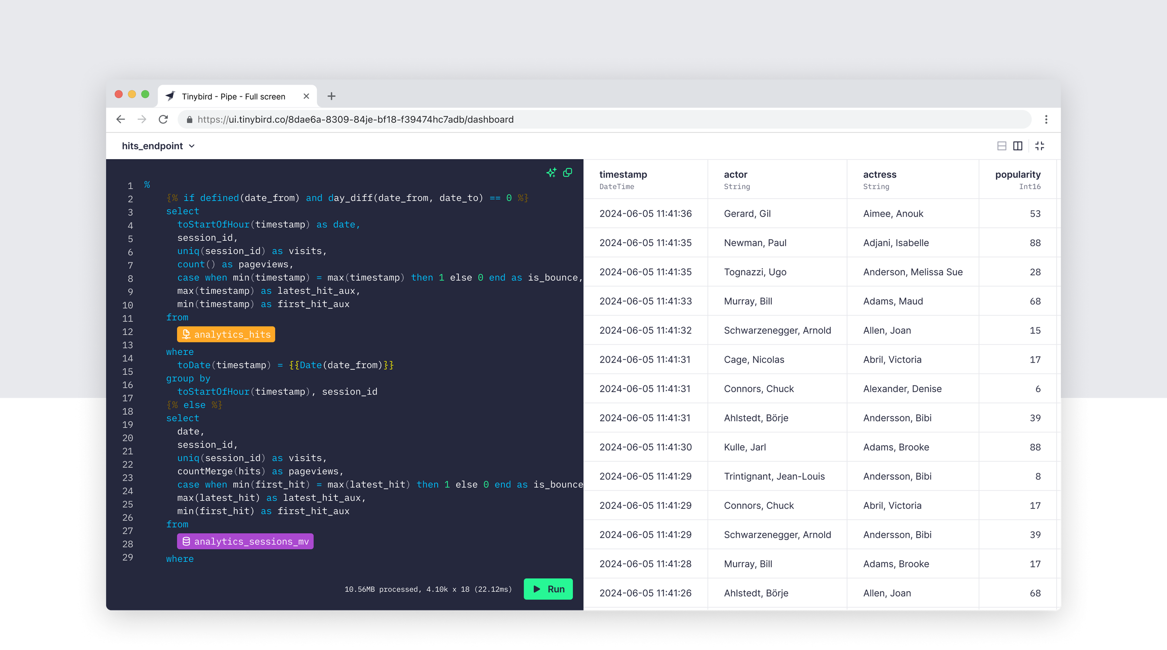 All real-time databases are fast. Indeed, scalability, performance, and security are table stakes. Tinybird is the real-time data platform that makes teams fast. And that’s our secret sauce. We are singularly focused on making data and engineering teams faster at their jobs. That is why, in addition to performance, we prioritize the developer experience for every feature we develop.
