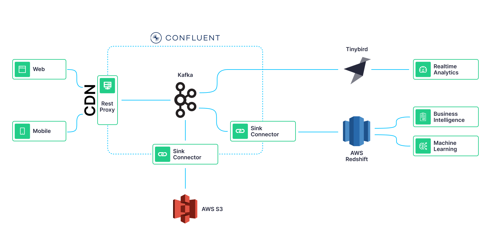 Fortunately, Confluent Cloud allowed them to quickly set up several sink connectors to send data to other platforms that would allow them to do the analysis they needed.