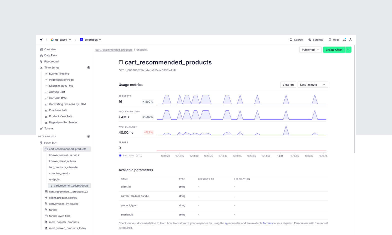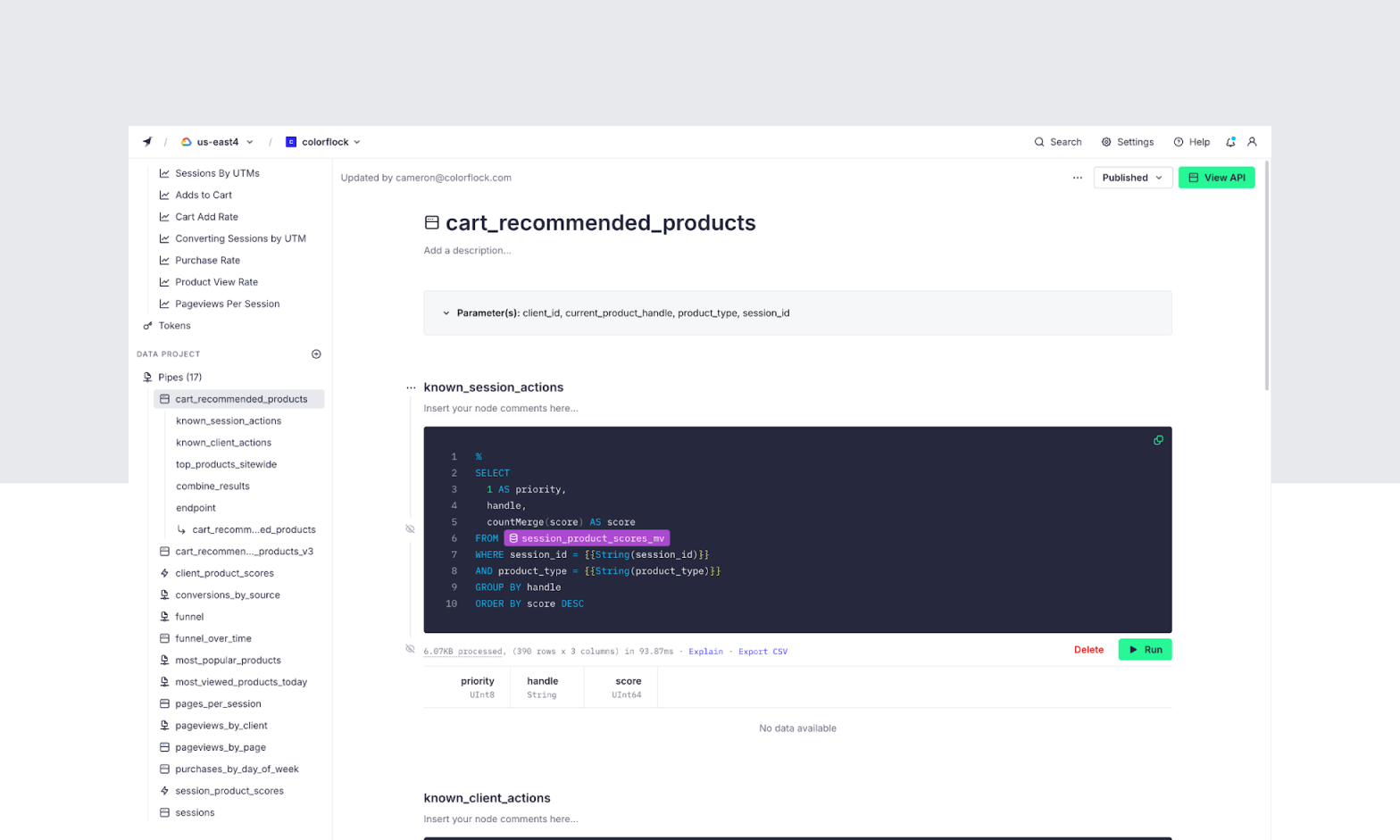 Perhaps the most well-known benefit of Tinybird is its "instant API" experience. You can instantly publish any SQL query as a dynamic and scalable REST Endpoint complete with OAS3.0 specs. Unlike ClickHouse® Cloud's beta endpoints, Tinybird's API Endpoints have been an integral part of the platform since its first public beta, and are well-supported at scale with minimal latency. For those who want to avoid building a backend service on top of ClickHouse®, Tinybird can provide a huge advantage.