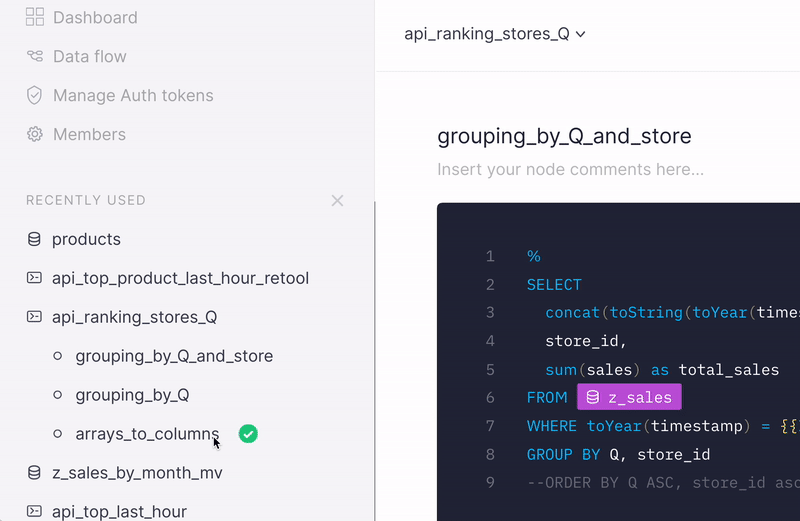 When it comes to working with your data in real time, pipes are a great way to keep your queries clean and short. A pipe can have multiple transformation nodes, which are easy to maintain and debug. Nodes in a pipe can query a Data Source or the results of previous nodes, like sub-queries.