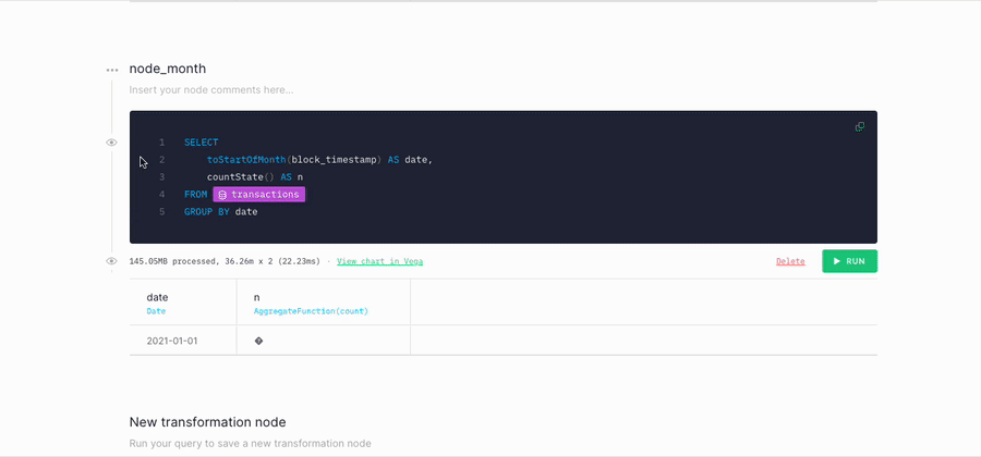 As developer for a crypto company, maybe you want to build an analytical dashboard to track in real-time the number of transactions processed on Ethereum over, say, the last year. If you try to do this over raw transaction data, you may run into problems depending on the technology you use.