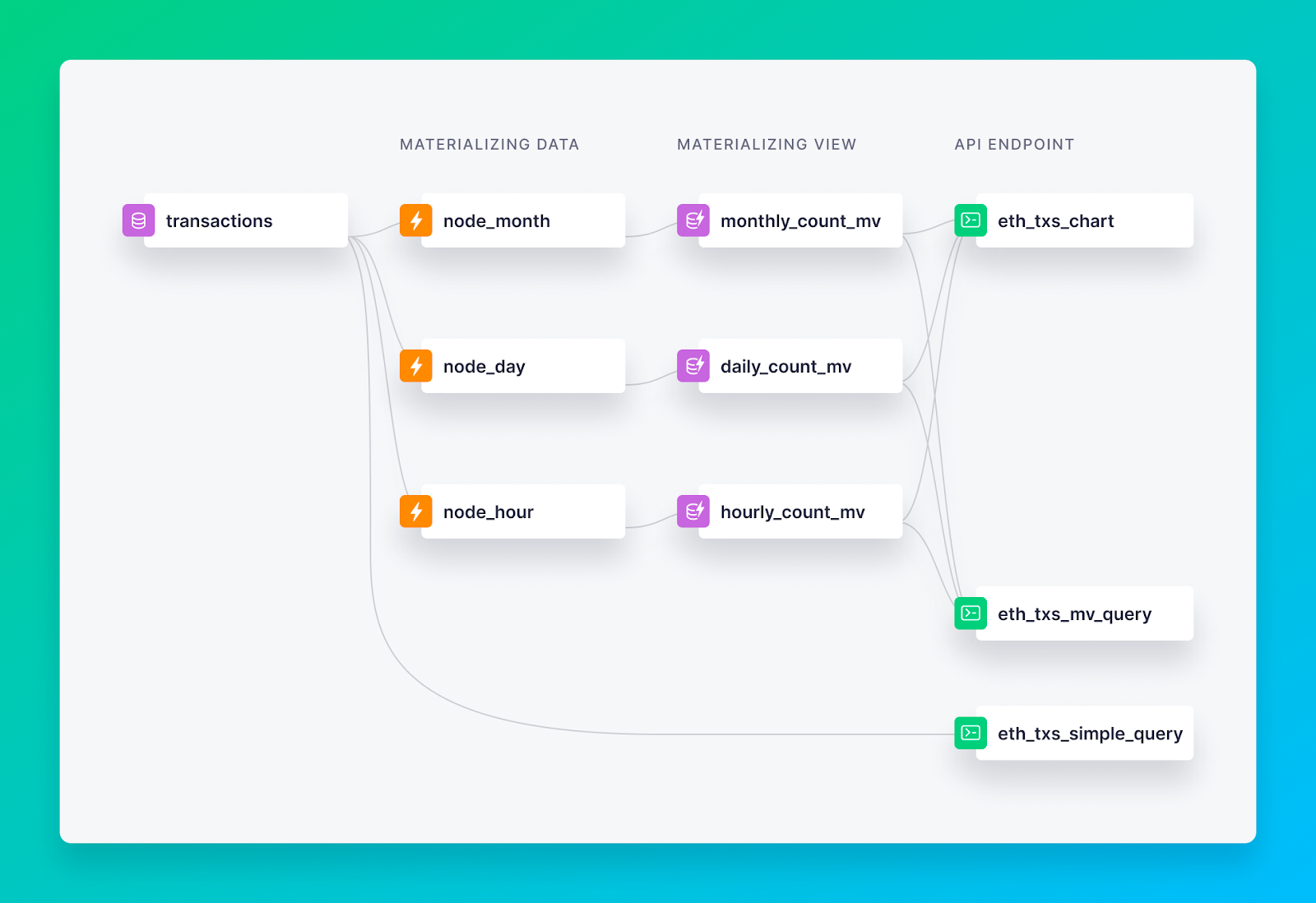In this blog post, I’ll show you how you might create rolled up counts of Ethereum blockchain transactions using Materialized Views in Tinybird.