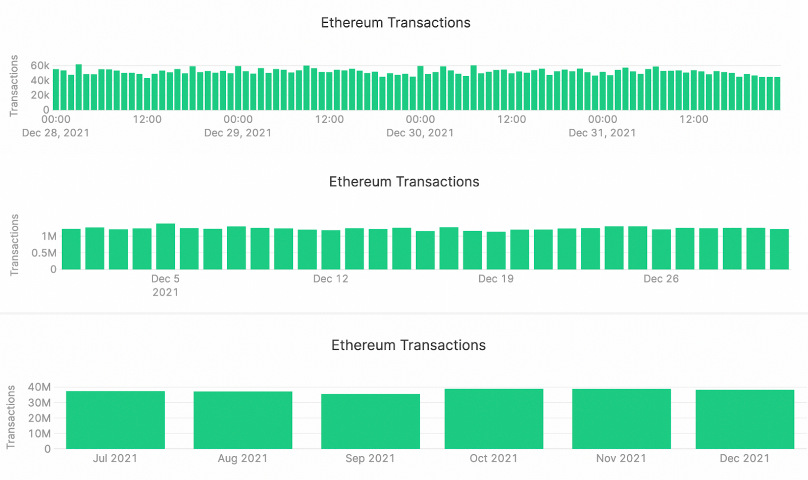 In 2021, the Ethereum blockchain processed over a million transactions per day, accelerating to over 220 million transactions during the last 6 months of the year.