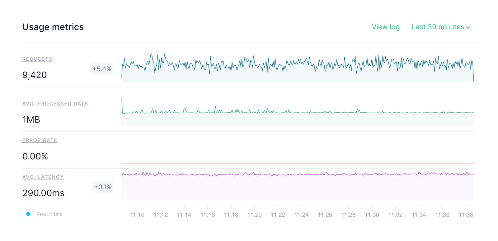 And, if you want to check just one Pipe in detail, you’ll now find a graph showing the average processed data over time on the API endpoint’s information page. Use this graph to check usage in real-time and compare performance across time periods.