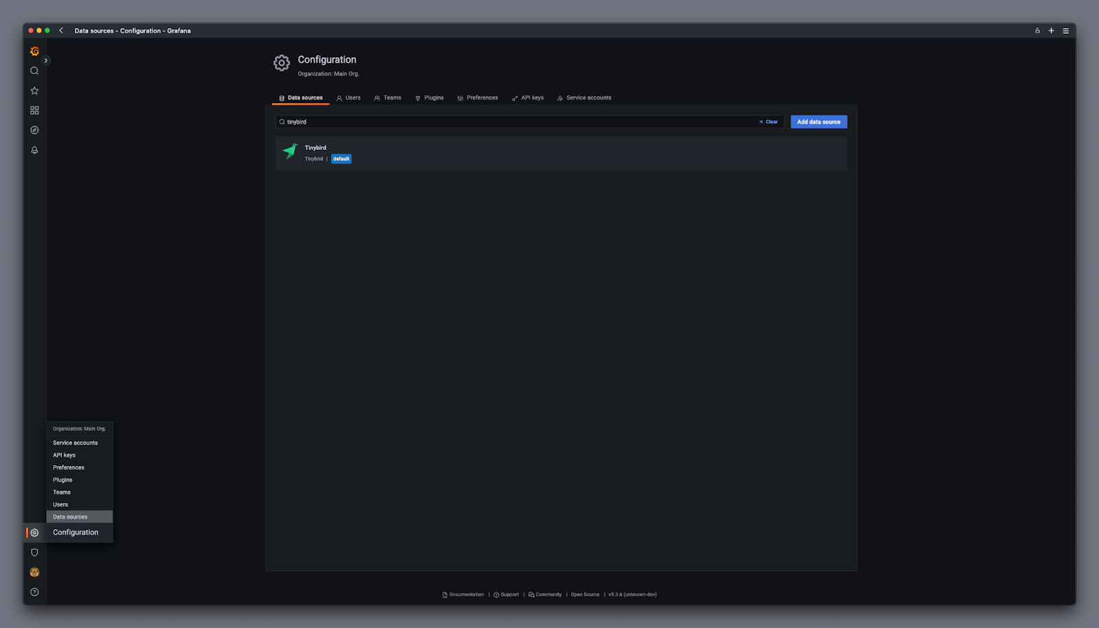 2. Add a new Data Source, and select Tinybird