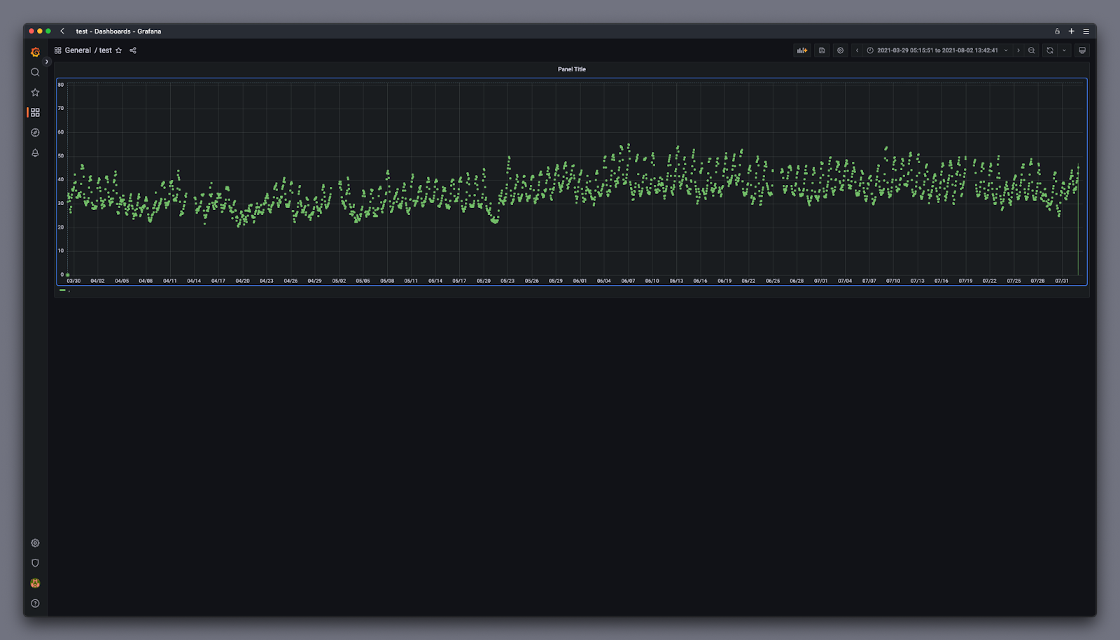 Your queries live outside of Grafana: stored and versioned in Git, and published to Tinybird. Inside Grafana, all you need to do is add a new panel, select your blazing fast query from a dropdown, and visualize the result however you want.