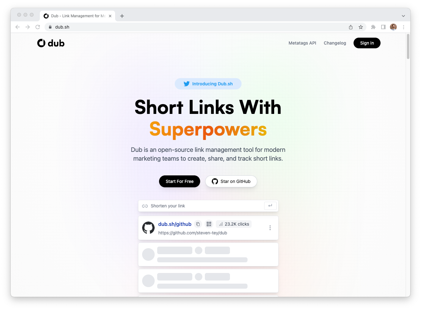 Steven: Sure thing! Dub is an open-source link management tool for modern marketing teams to create, share, and track short links. I started building it in September of 2021 and have been progressively scaling it up and adding features in the last year or so. I “officially” launched it in September of last year.