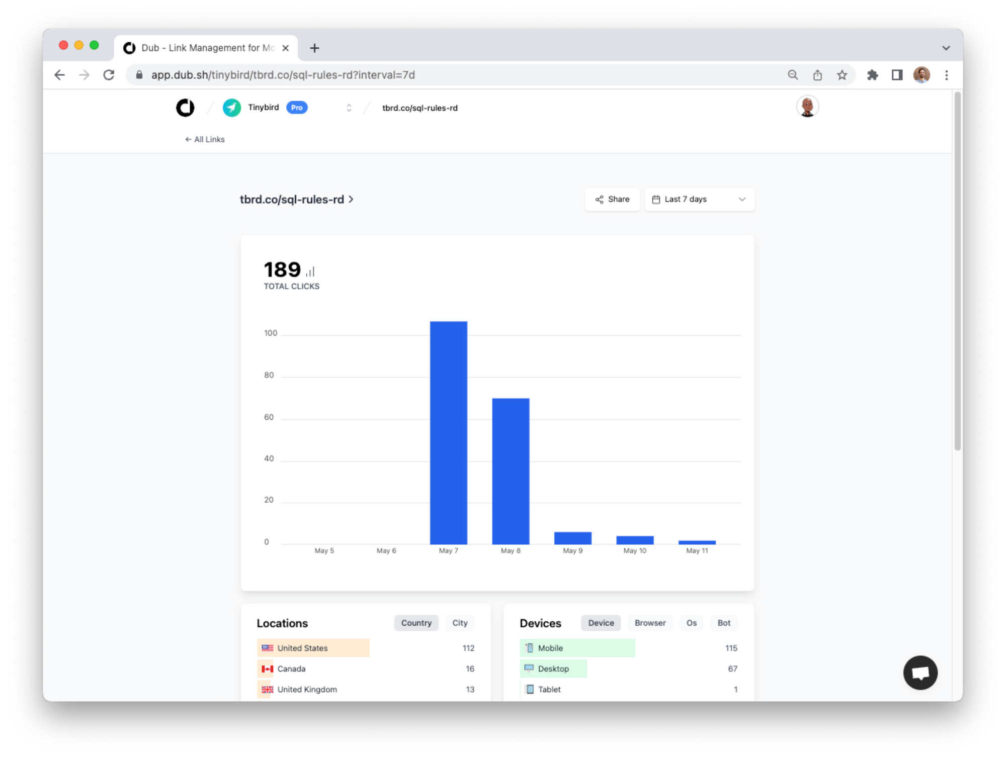 Steven: It’s all about scale. Tinybird is basically the entire backend for Dub. And so as I scale Dub, I’ll just keep leaning on Tinybird to scale with me. I have no concerns about that.
