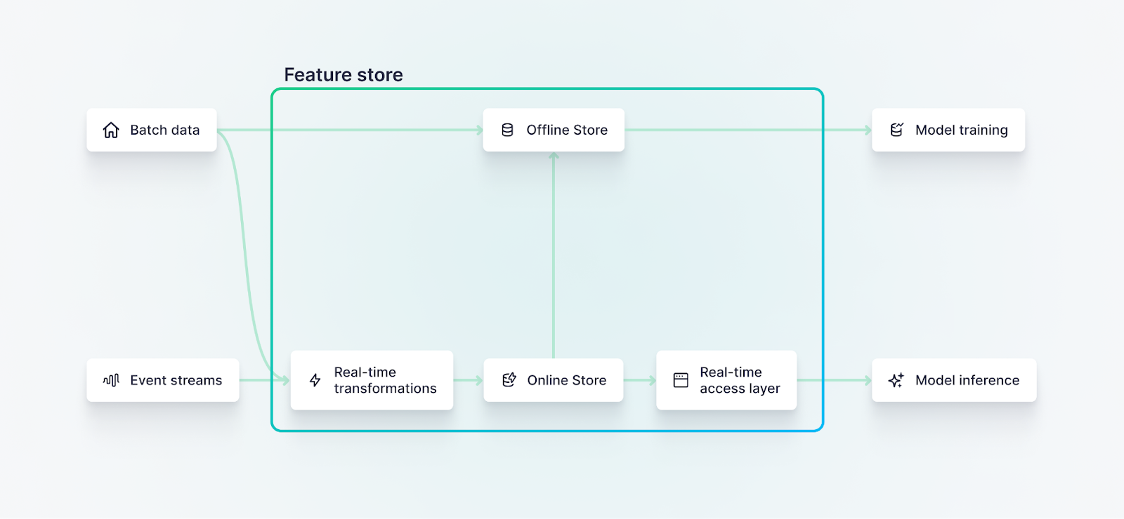 - Data Consistency: Without a feature store, there's a risk of training models on one set of features and then serving predictions with slightly different feature data. This can and will cause models to run inconsistently in production when they looked fine in development. A feature store ensures that ML models infer against the same dataset from which they were trained, similar to the role of a database in enforcing data integrity.