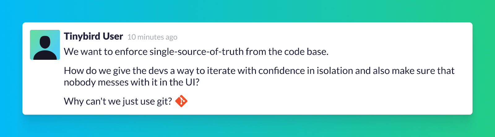 So, we wanted to make sure that changes to Tinybird Data Projects made it easier and less burdensome by considering the unique requirements for Continuous Delivery with data.