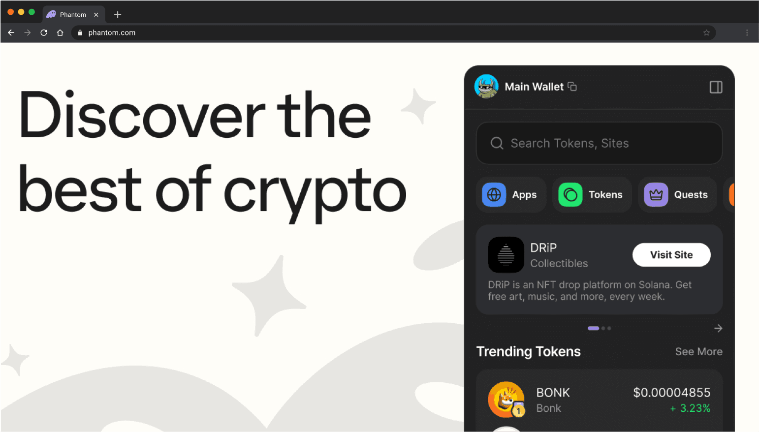 Phantom is a secure, all-in-one cryptocurrency wallet that lets you buy, hold, send, and receive digital assets while building your portfolio of cryptocurrencies and NFTs. With millions of users, Phantom is known for its ease of use for both beginners and crypto-enthusiasts.